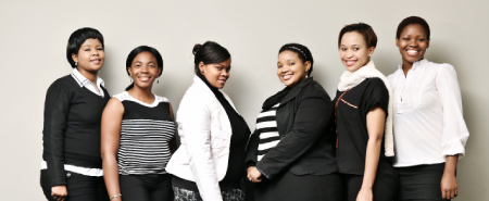 from left to right: Odette Hantise - Reception Intern, Monei Tonyane-Monchwe - Safety intern, Meagan Julius - Welfare and Humanitarian and Healthcare Intern, Omphile Malgas - Stakeholder Relations and Communications Intern, Phemelo Phakedi - Infrastructure and Land and Housing Intern and Mpho Matotong - Project Administrator (SMME Development) Intern.